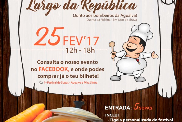 Não perca no próximo dia 25 de fevereiro entre as 12h00 e as 18h00 no Largo da República em Agualva o 1º Festival de Sopas, uma iniciativa da Junta de Freguesia em parceria com o AEP -Grupo 122 (Escoteiros de Mira Sintra).